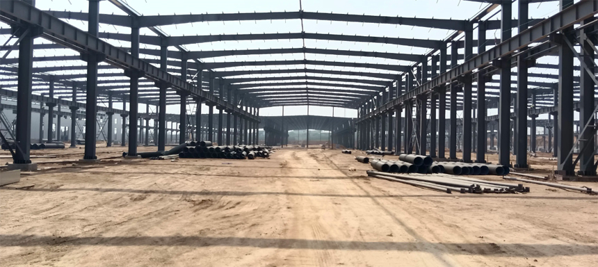 3.钢结构厂房在制作时,要考虑荷载对钢结构的压缩变形值,和接头焊缝的收缩变形值,施工中须严格控制焊接收缩变形,注意基础沉降的变化;